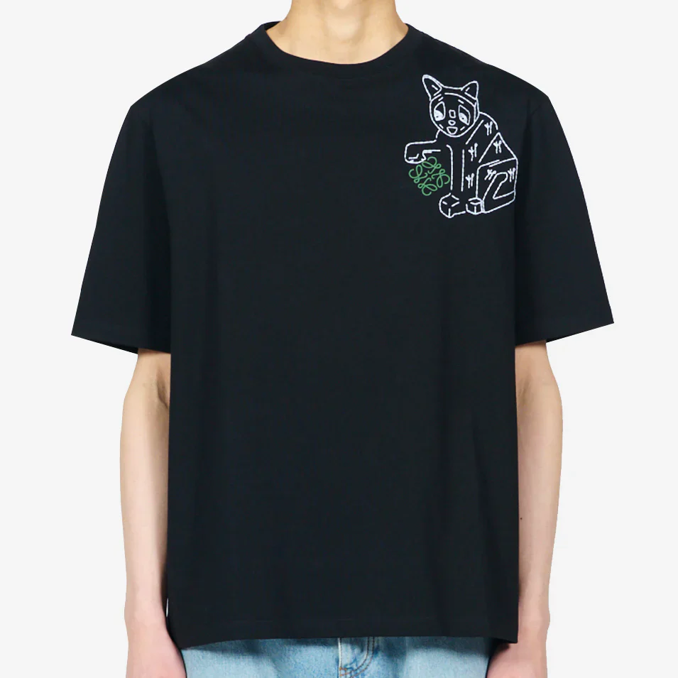 Loewe Anagram Lucky Cat Embroidery T-Shirt Black